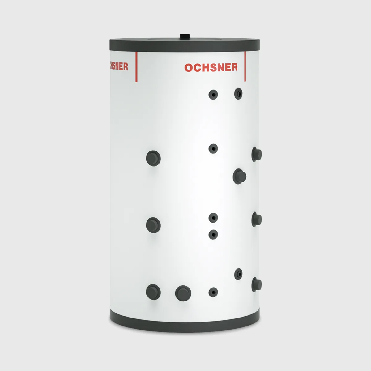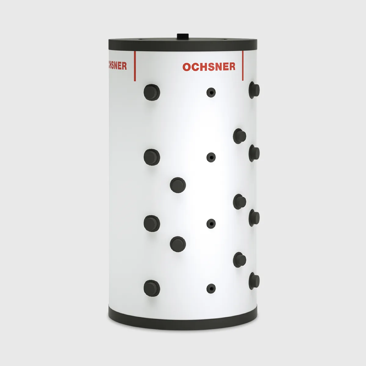 Буферні баки теплових насосів ефективно накопичують теплову енергію, забезпечуючи стабільне теплопостачання, водночас значно подовжуючи строк служби компресора завдяки зменшенню циклів вмикання/вимикання. Моделі OCHSNER використовують принцип стратифікованого бака, зберігаючи гарячу воду у верхній частині, що гарантує наявність ГВП навіть при частковому зарядженні. Крім того, ці баки можна заряджати від кількох джерел тепла і вони мають великі розміри підключень, ідеально узгоджені із системою теплового насоса.